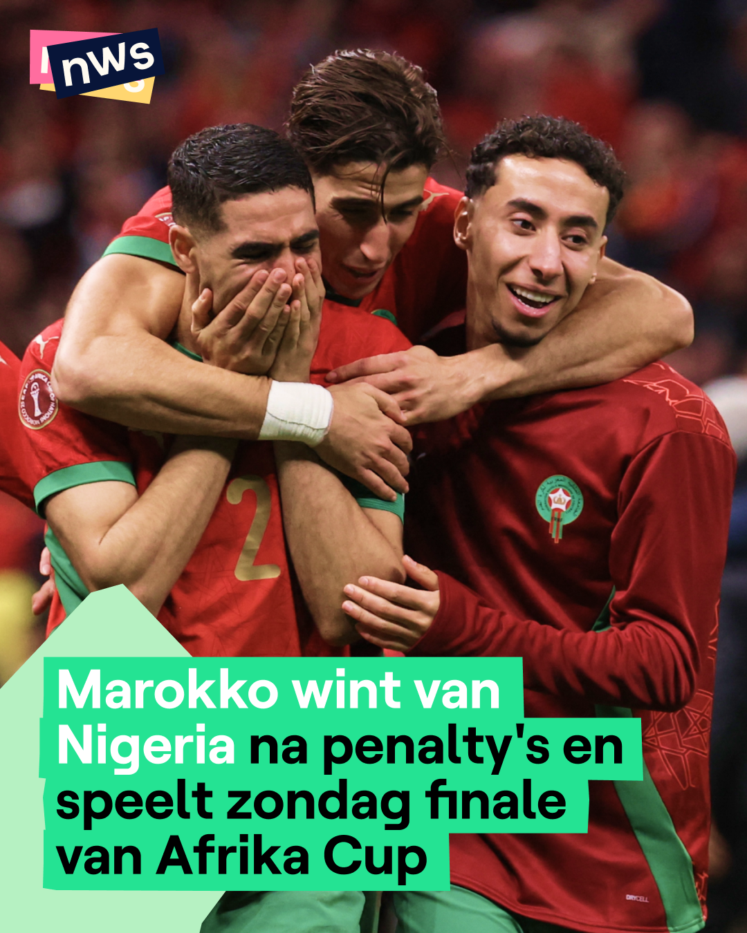 Na een superspannende match is het dan toch gelukt: Marokko gaat door naar de finale van de Afrika Cup. Dat is een voetbalcompetitie tussen 24 Afrikaanse landen en vindt dit keer plaats in Marokko. Het Marokkaanse elftal won gisteren in de halve finale van Nigeria. Het bleef de hele match 0-0 en de winnaar werd beslist door penalty's. Marokko is een van de grote favorieten om de Afrika Cup te winnen. In de finale nemen ze het op tegen de andere topfavoriet Senegal die gisteren Egypte klopte met 1-0. Wie zal de Afrika Cup winnen? Dat weten we op zondag 18 januari.