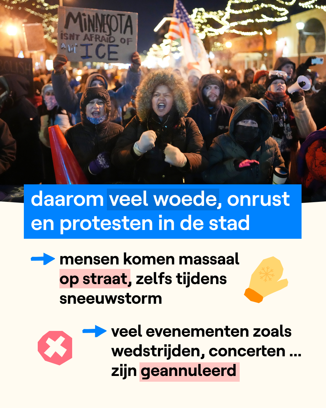 Er is nog veel onduidelijkheid rond het schietincident in Minneapolis. Amerikaanse mediakanalen en de overheid lijken het niet eens te zijn over welke informatie nu juist klopt. Toch is de woede groot door de schietpartij. Duizenden Amerikanen protesteren nog steeds hevig tegen immigratiedienst ICE. Het is nochtans extreem koud op veel plekken in het land door een heftige sneeuwstorm. In de stad Minneapolis komen op straat bij temperaturen tot rond -25°C.