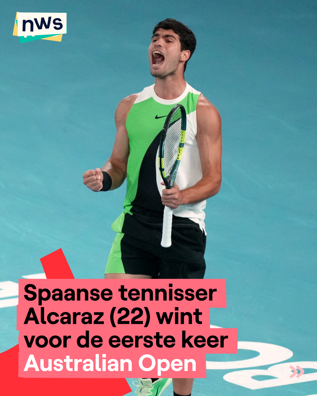 Vamos! De Spaanse tennisser Carlos Alcaraz (22) heeft de Australian Open gewonnen in het mannen enkelspel. Da's een van de belangrijkste tennistoernooien. Hij versloeg de Serviër Novak Djokovic. Djokovic begon supersterk, maar Alcaraz haalde hem snel in. 't Is de eerste keer dan de Spanjaard de Australian Open wint. Op amper 22-jarige leeftijd heeft hij intussen al elk grandslamtoernooi minstens één keer gewonnen. Gisteren was het de vrouwenfinale. De Kazachstaanse Elena Rybakina won toen van de Wit-Russische Aryna Sabalenka.