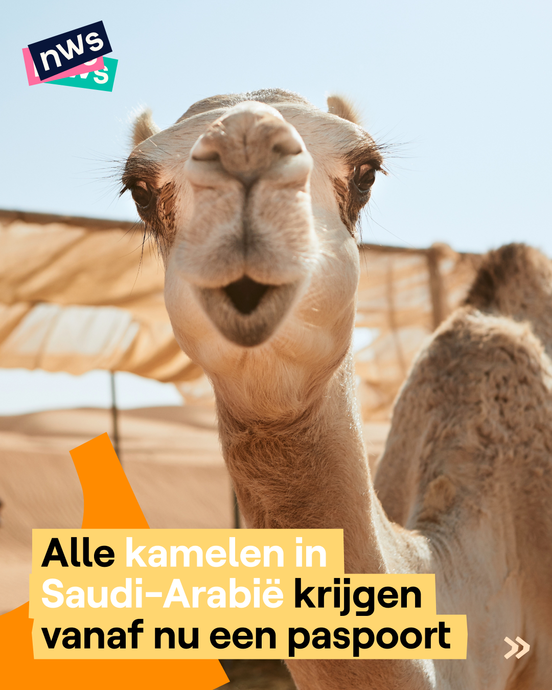 In Saudi-Arabië krijgen kamelen vanaf nu hun eigen… paspoort! In dat ‘kamelenpaspoort’ staat alles wat je over het dier moet weten: de naam, geboortedatum, kleur, het microchipnummer en zelfs foto's van de kameel. In Saudi-Arabië leven er zo'n 2,2 miljoen kamelen en die zijn heel belangrijk in het land. Ze staan symbool voor rijkdom en brengen vaak veel geld op. Met de nieuwe paspoorten wil de overheid beter controleren hoeveel kamelen er zijn. Een opvallend detail: het is nog maar 6 jaar geleden dat vrouwen in Saudi-Arabië een eigen paspoort mogen hebben.