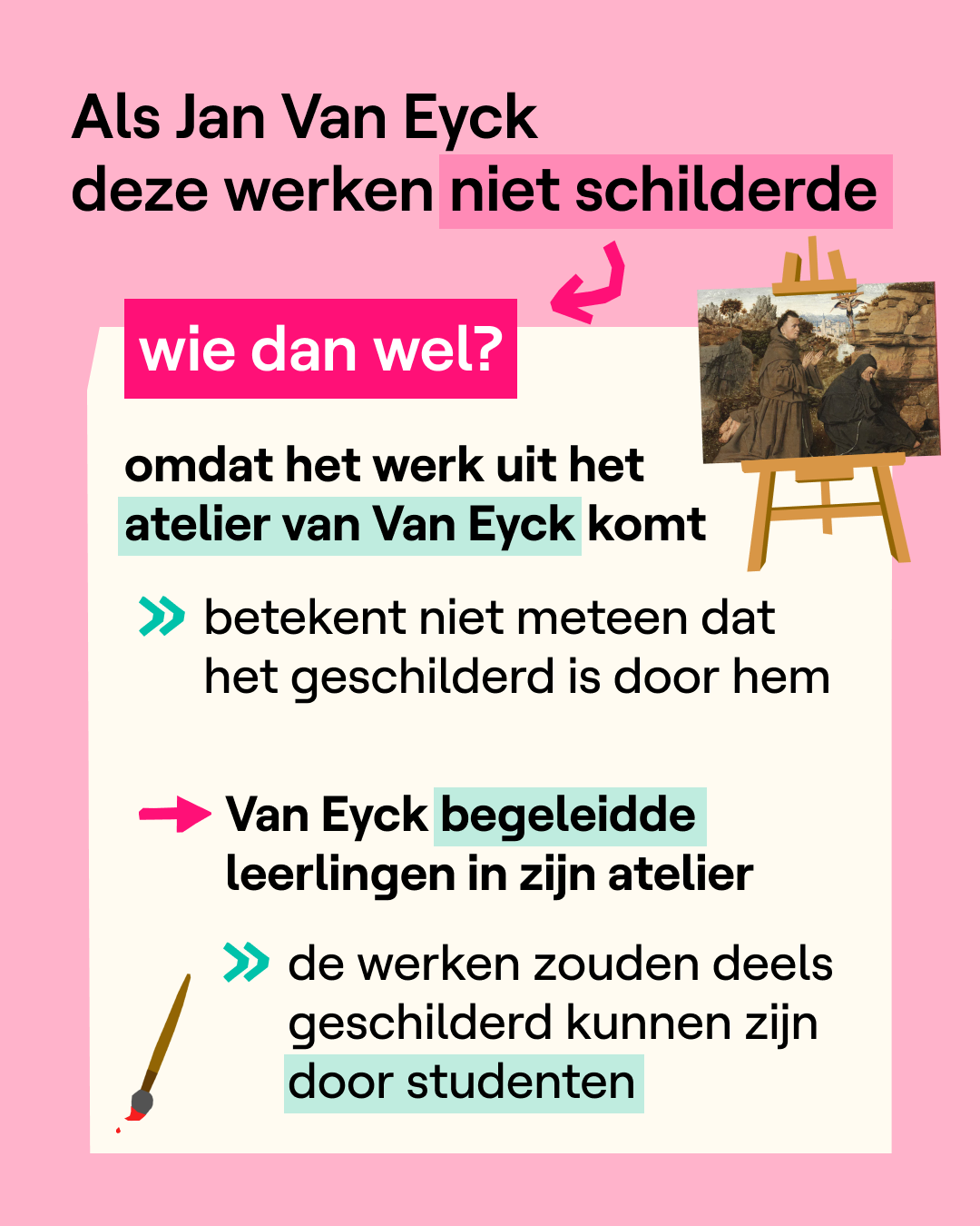 De schilderijen heten 'Sint-Franciscus ontvangt de stigmata'. Omdat de twee versies van het werk niet van Jan Van Eyck zouden kunnen zijn, vragen wetenschappers zich af of er nog een originele versie bestaat.