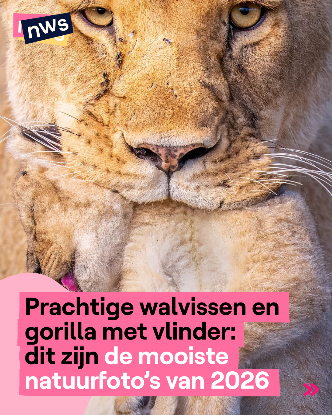 De winnaars van de World Nature Photography Awards 2026 zijn bekend. Dat is een internationale wedstrijd waar fotografen van over de helel wereld hun beste natuurfoto's insturen. Een jury kiest daarna de mooiste beelden van dieren, landschappen en momenten in de natuur. De hoofdprijs ging dit jaar naar de Australische fotograaf Jono Allen met een foto van een witte bultrugkalf in Tonga. Er zijn nog veel meer indrukwekkende beelden: van beren die vissen proberen te vangen tot een gorilla met een vlinder. Swipe voor de mooiste foto's.