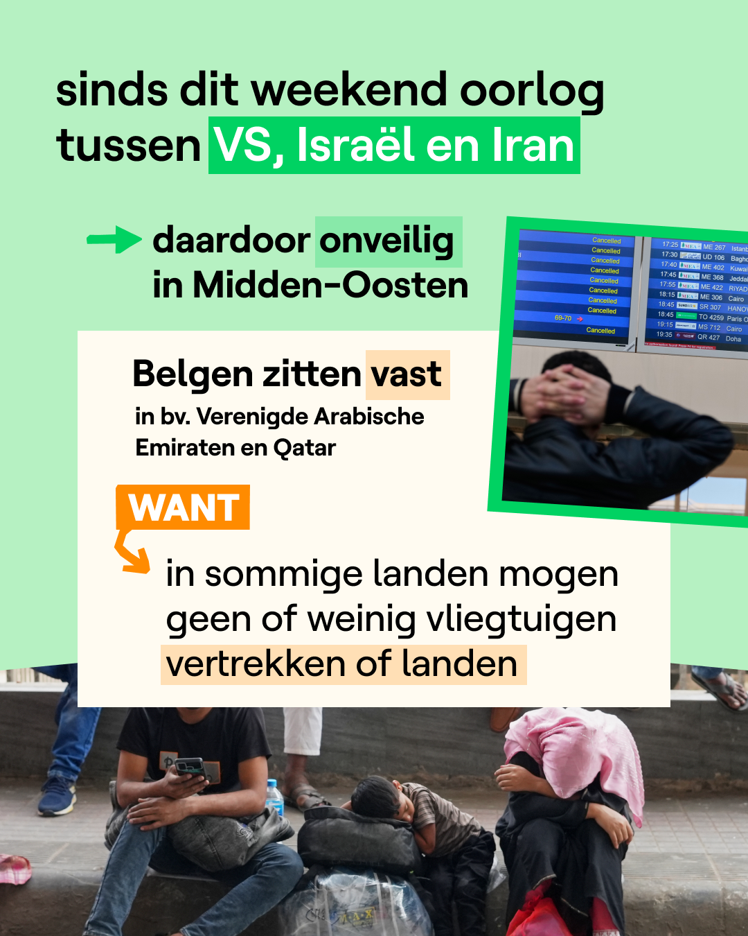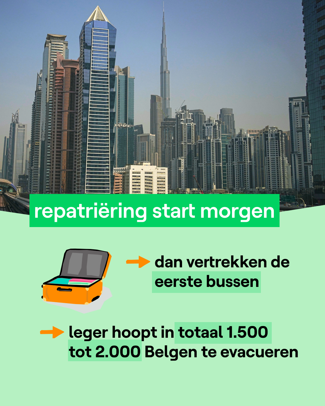 Bij de start van de oorlog in Iran waren er zo'n 2.500 Belgen op reis in het Midden-Oosten. Alleen Belgen die er tijdelijk zijn, zoals toeristen en zakenmensen, hebben recht op repatriëring. Belgen die in het Midden-Oosten wonen niet.