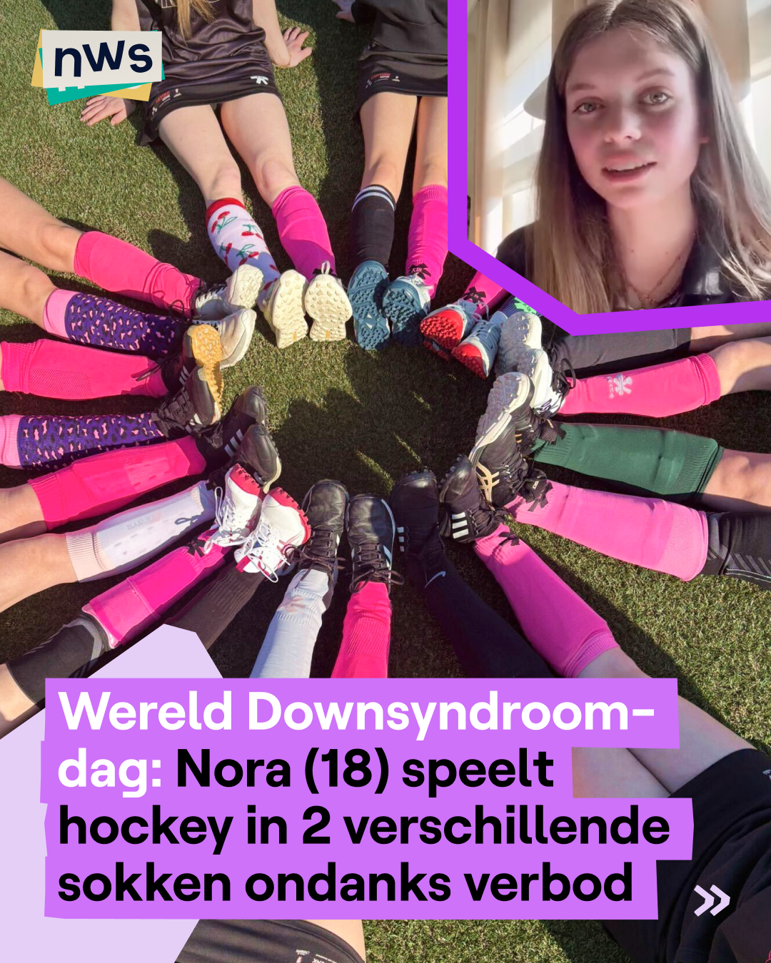 Wereld Downsyndroomdag: Nora (18) speelt hockey in 2 verschillende sokken ondanks verbod