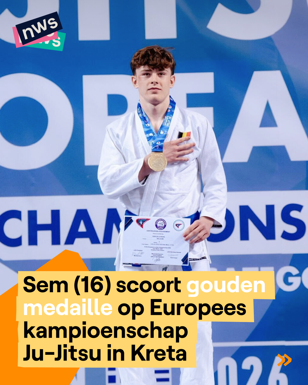 Sem Geluykens (16) komt uit Zandvliet (Antwerpen) en is de nieuwe Europees kampioen Ju-Jitsu. Da's een Japanse verdedigingssport. Het EK vond plaats op het Griekse eiland Kreta. Sem doet al 8 jaar aan Ju-Jitsu en heeft al meerdere medailles gewonnen. Twee jaar geleden scoorde hij goud op o.a. het Europees kampioenschap, het Belgisch kampioenschap en zelfs het Wereldkampioenschap. Maar daar stopt het niet bij. In totaal won Sem al 8 medailles in zijn carrière. En vandaag mocht hij nummer 9 mee naar huis nemen.