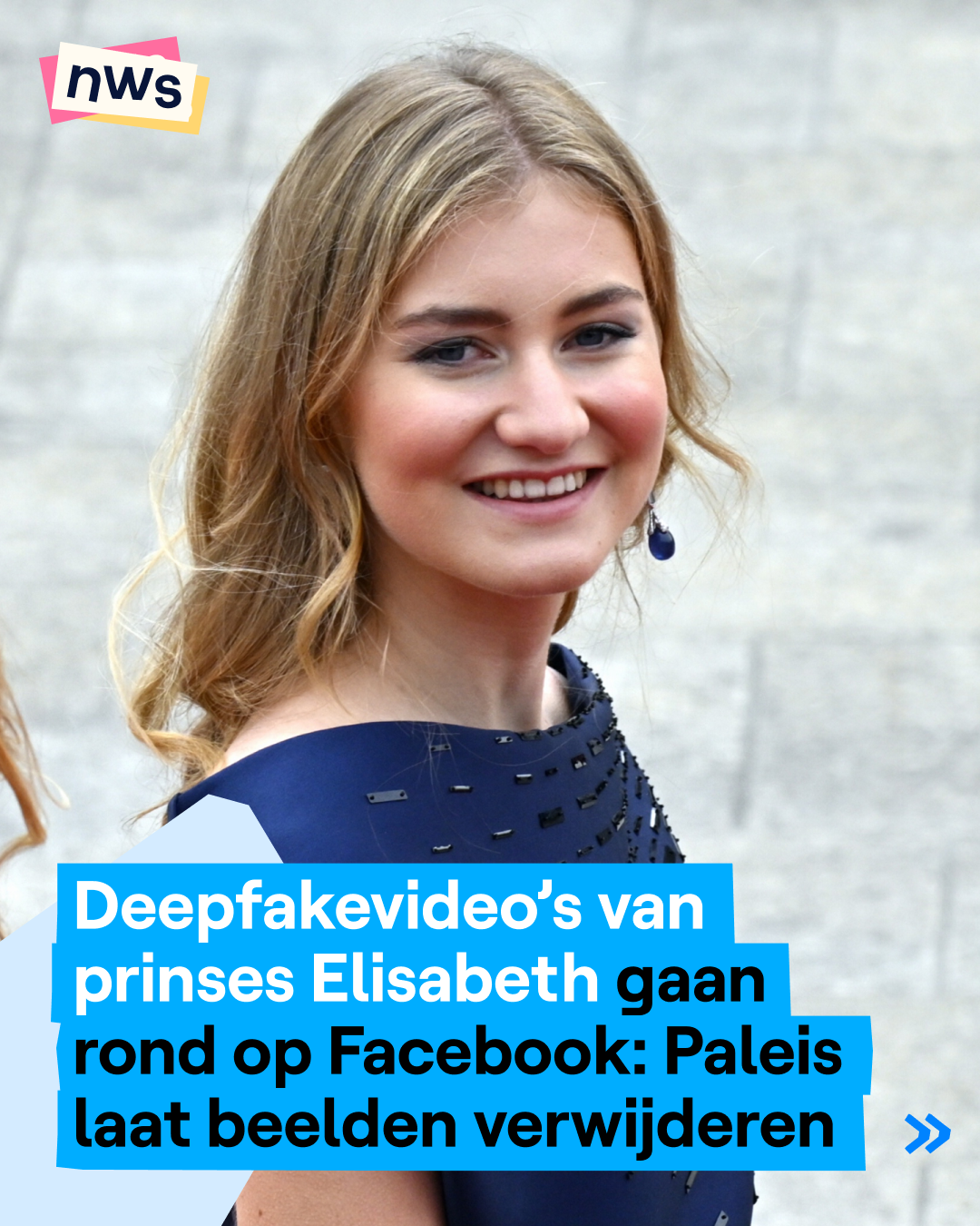 Op Facebook gaan tientallen deepfakefoto's en -video's rond van kroonprinses Elisabeth (24). Dat zijn beelden die met AI bewerkt zijn en zo levensecht lijken. Een van de video's lokt veel reactie uit. De prinses danst voor een tralies van een gevangenis, in een korte broek en kort topje. De video werd al meer dan 14.000 keer bekeken en heeft meer dan 1.000 likes. Het Paleis is op de hoogte en laat weten dat ze "het nodige heeft gedaan" om de beelden te rapporteren.