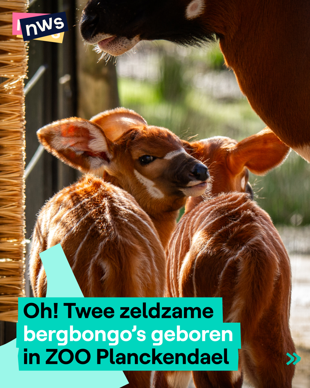 ’t Is feest in ZOO Planckendael: daar zijn twee baby bergbongo’s geboren. En dat is goed nieuws, want de bergbongo is een bedreigde diersoort. Het is een grote antilope uit de bergbossen van Kenia (Afrika). Je herkent het dier aan zijn bruine vacht met opvallende witte strepen. Wereldwijd leven er nog minder dan 100 in het wild. Bergbongo’s verdwijnen steeds meer door illegale houtkap, waardoor hun leefgebied verdwijnt. Er wordt ook op hen gejaagd voor hun vacht en vlees. De twee pasgeboren bongo’s zijn allebei meisjes en hebben nog geen naam. Maar daar kan jij bij helpen... tijdens de eerste week van de paasvakantie kan je stemmen op de kanshebbers via de Insta van de zoo.