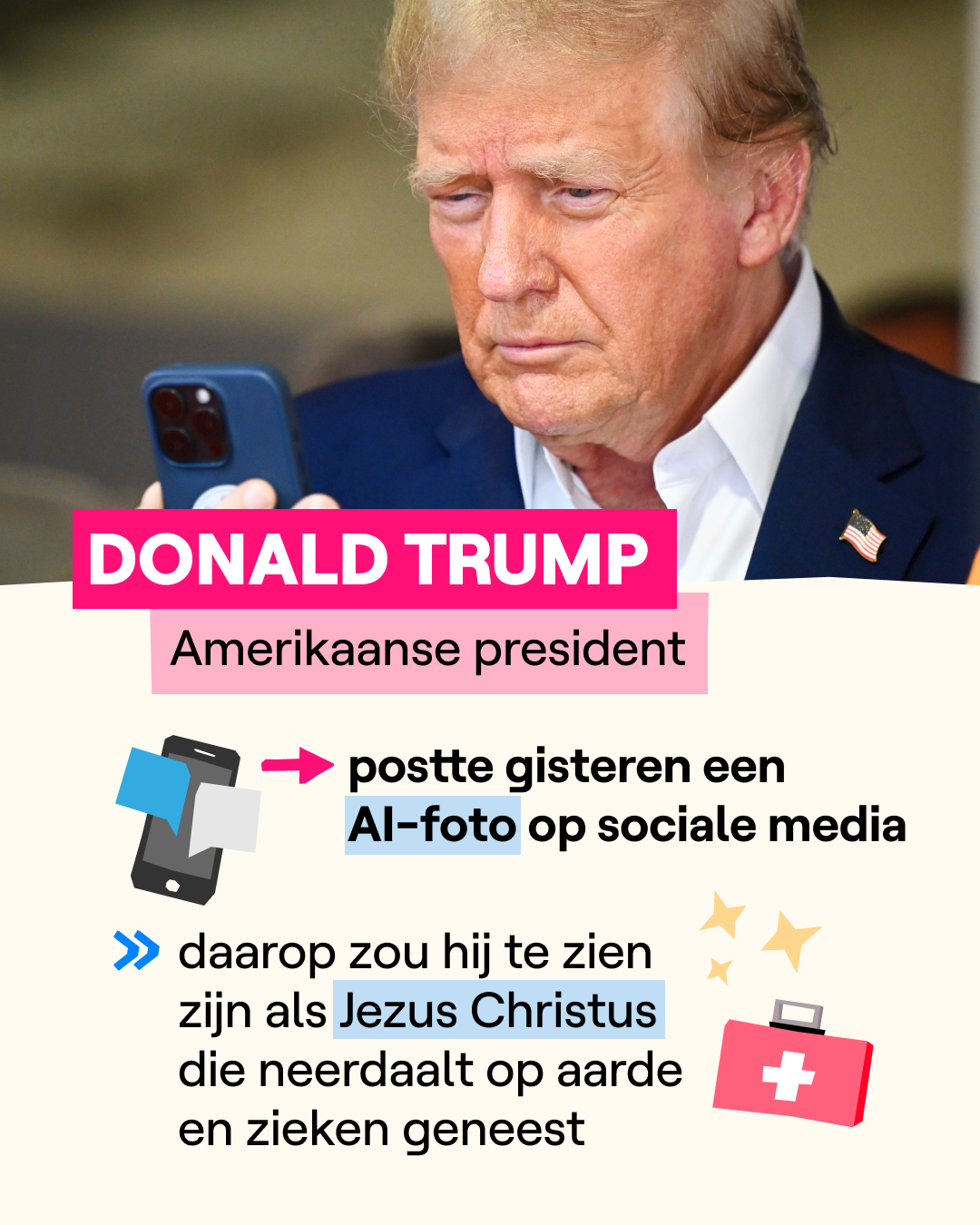 Trump post AI-foto van zichzelf als Jezus: waarom doet hij dat?