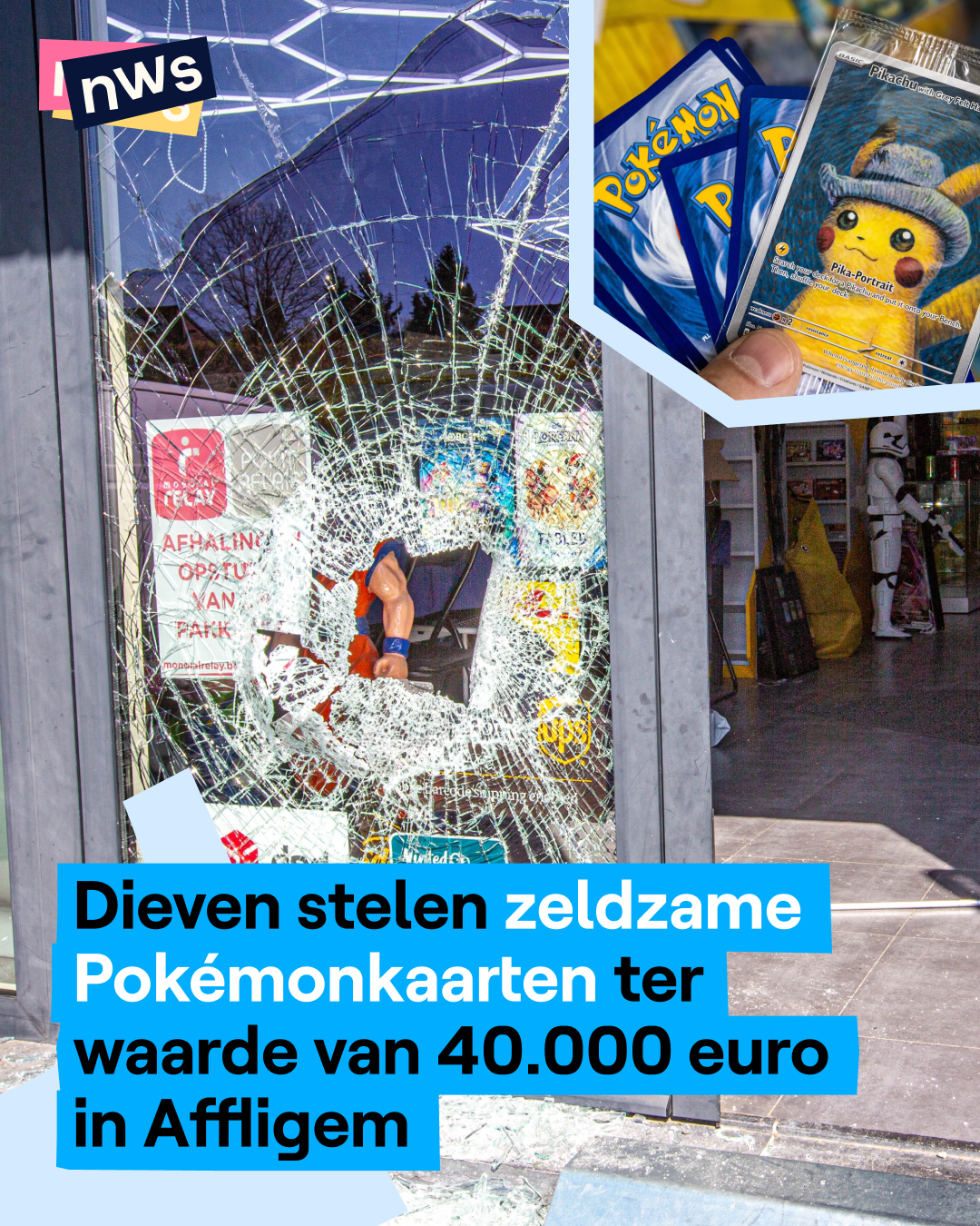 Dieven hebben een 20-tal zeldzame Pokémonkaarten gestolen in een winkel in Affligem (Vlaams-Brabant). De waarde ligt ongeveer tussen de 30.000 en 40.000 euro. De winkel is gespecialiseerd in vintage speelgoed. De dieven hebben een gat in het raam gemaakt en zijn zo naar binnen gegaan. Ze hebben naast Pokémonkaarten ook geld uit de kassa mee. De politie is een onderzoek gestart, maar van de daders ontbreekt voorlopig elk spoor. Gelukkig is de winkel verzekerd tegen diefstal.