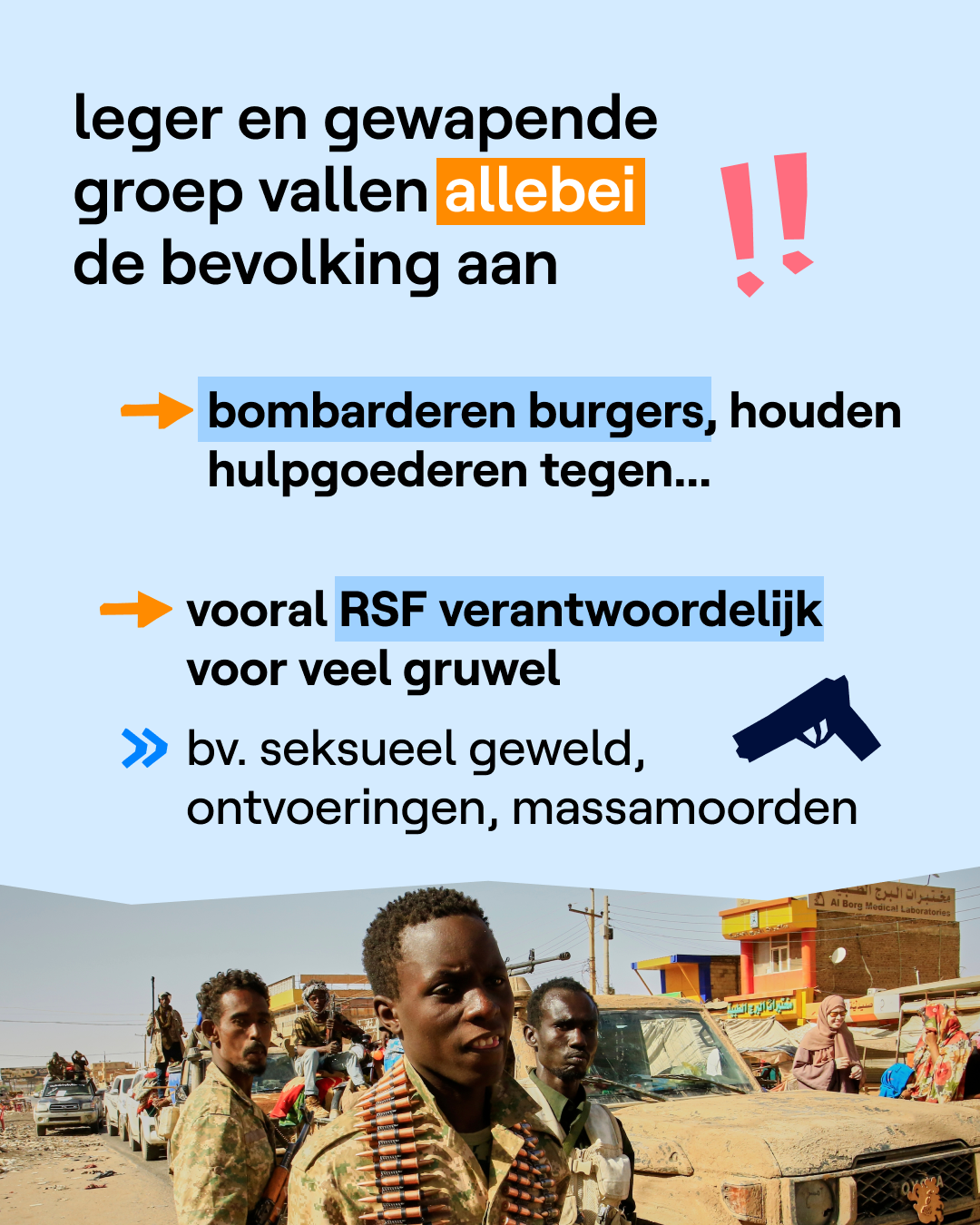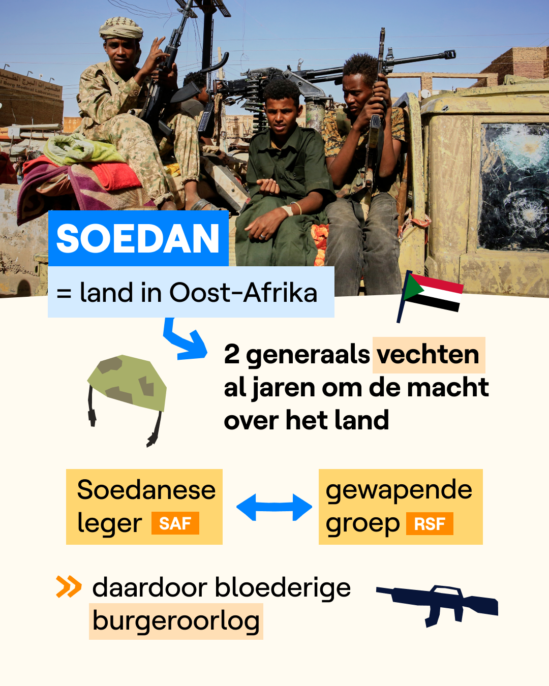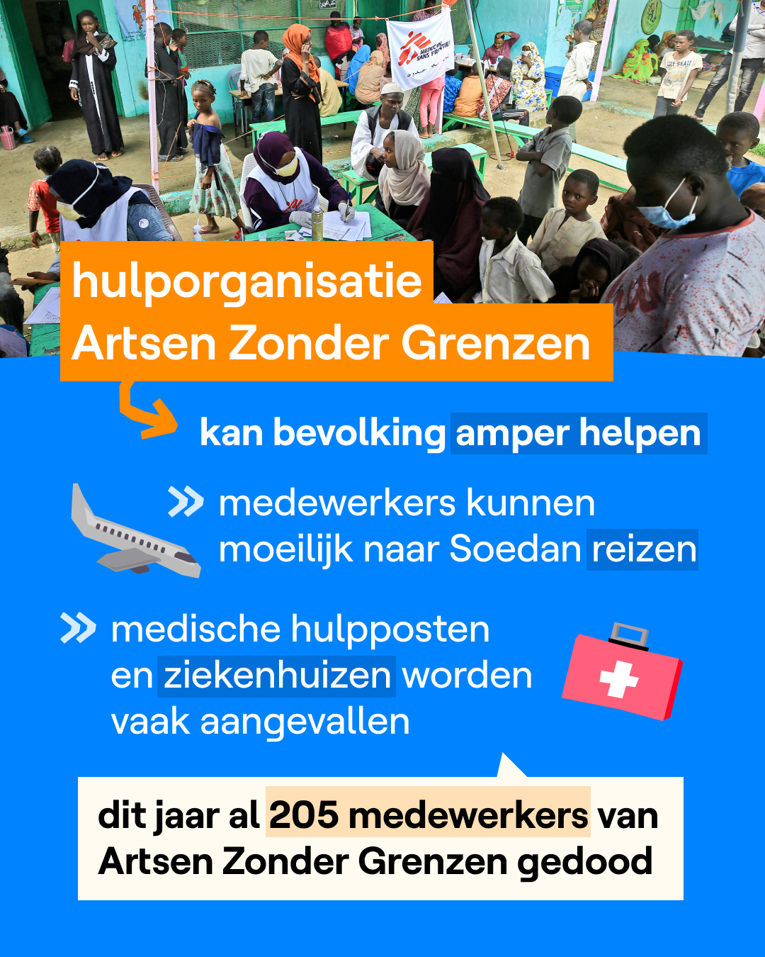 De oorlog in Soedan komt veel minder in het nieuws dan andere oorlogen, zoals bijvoorbeeld die in Gaza of Oekraïne. Dat komt omdat er in Soedan geen journalisten binnen mogen. Veel mensen hebben er ook geen smartphone of er is amper internet. Daardoor is er minder info over het conflict en is het moeilijker om getuigenissen te vinden.
