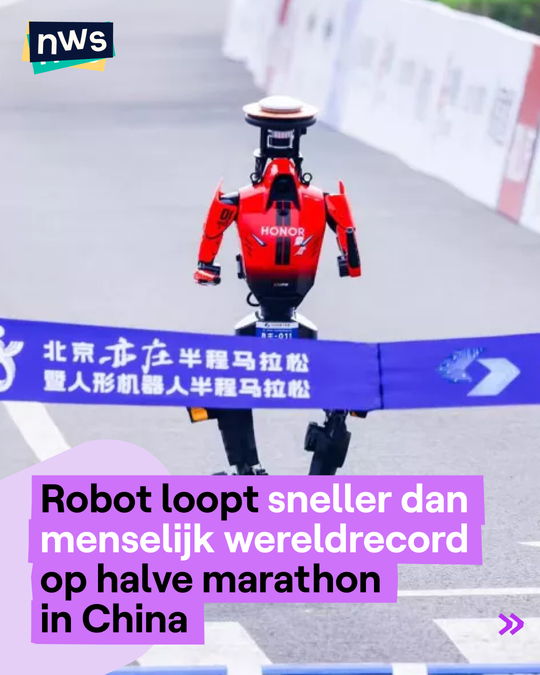 Robot loopt sneller dan menselijk wereldrecord op halve marathon in China