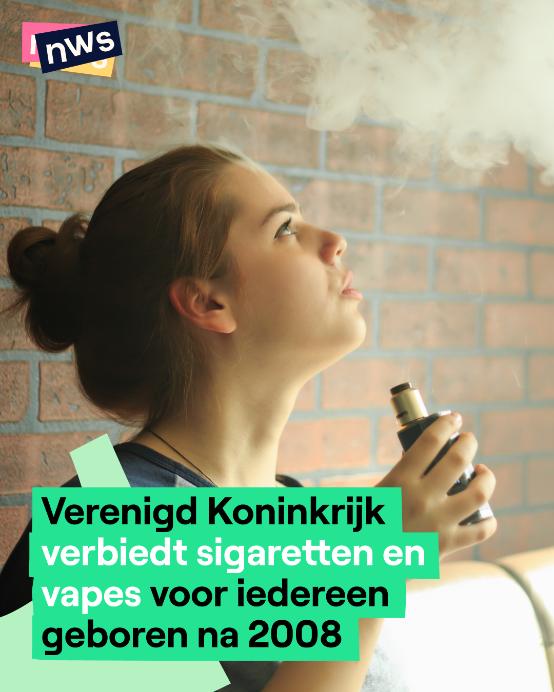 Het Verenigd Koninkrijk heeft een nieuwe rookwet goedgekeurd. Vanaf 2027 zal niemand die geboren is na 2008 nog legaal sigaretten of vapes kunnen kopen. Daarmee krijgt het land een van de strengste rookwetten ter wereld. De Britse regering wil zo een eerste rookvrije generatie creëren. Vanaf volgend jaar komen er ook extra regels voor vapes. Zo worden e-sigaretten verboden in auto’s met kinderen, op speelplaatsen en in de buurt van scholen. De minister van Volksgezondheid noemt de beslissing "een historisch moment voor de gezondheid van de natie".