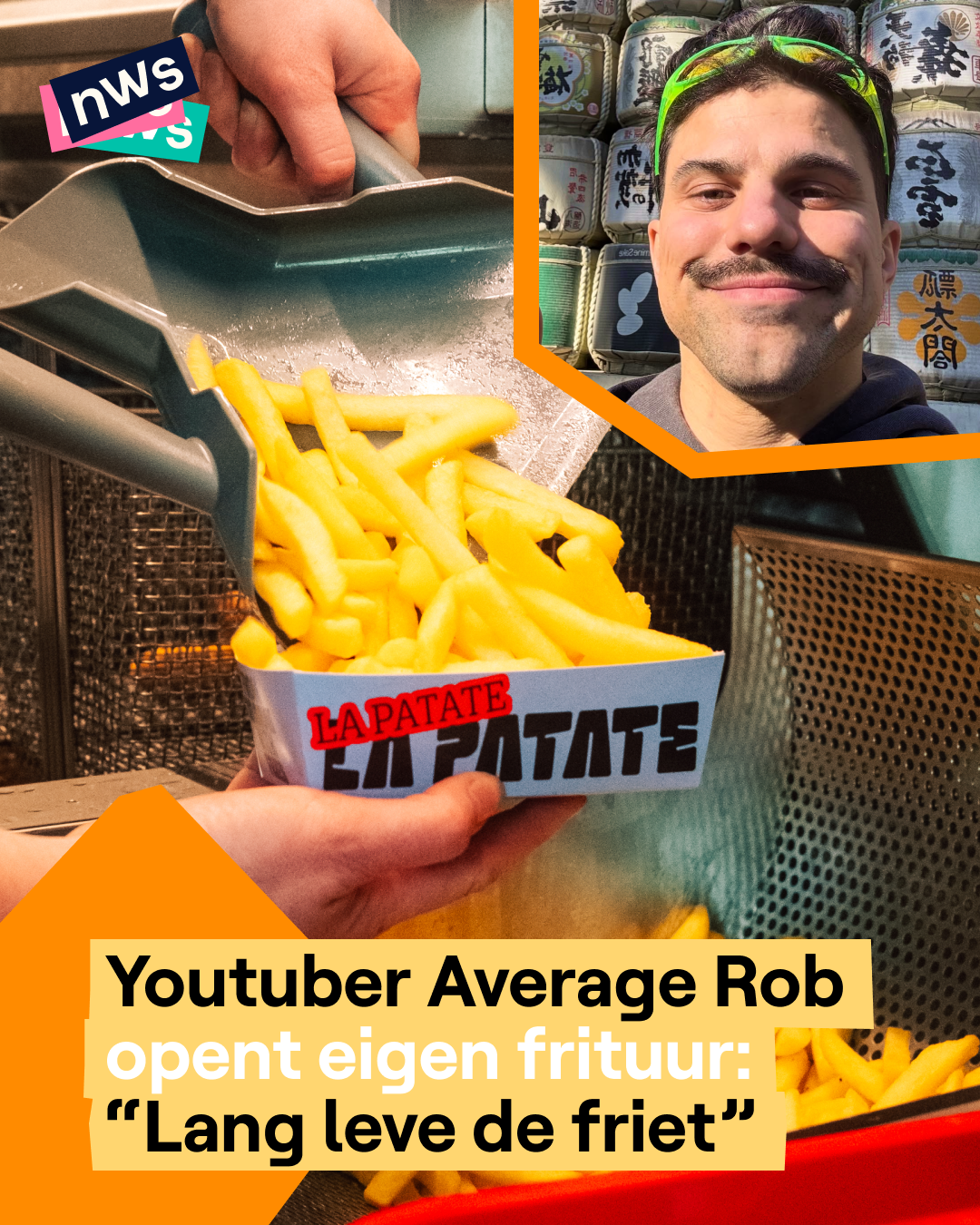 Youtuber Average Rob opent een eigen frietkot, 'La Patate'. Hij wilt het iconische kleine 'frietkot' terugbrengen naar steden. Geen ingewikkelde menu's zoals spaghetti, maar wel alle klassieke frituursnacks. Ook de Belgische klassiekers zoals: stoofvlees, ballekes in tomatensaus en vol-au-vent zullen op de kaart staan. De eerste 'La Patate' kan je vinden in Antwerpen, naast het Centraal station. De bedoeling is dat er de komende jaren nog meer frietkoten openen. Zijn grootste doel is om de Belgische frietcultuur te verspreiden over de hele wereld. Nu al zin in een frietje? Je zal nog even moeten wachten, want vanaf 8 mei kan je 'La Patate' vinden in Antwerpen.