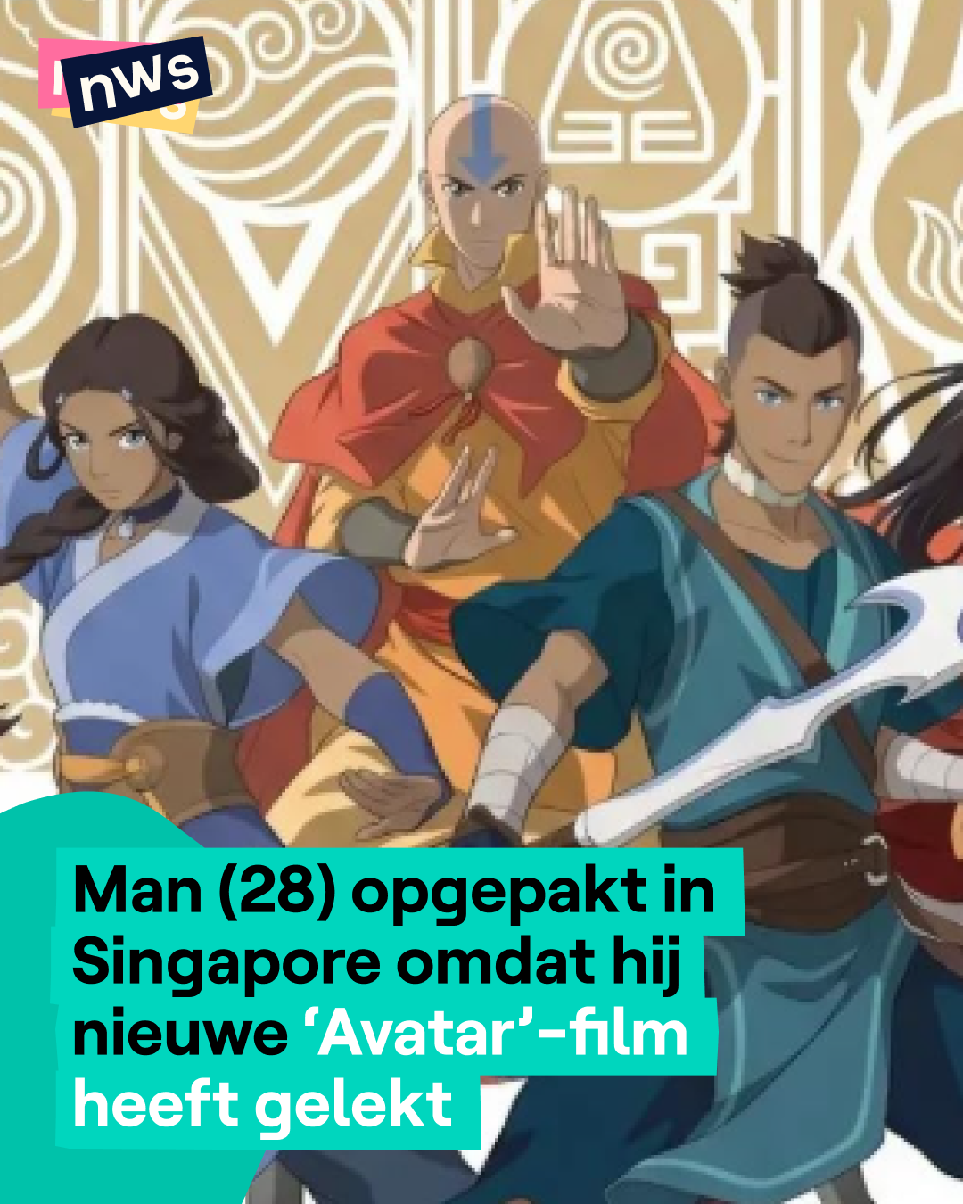 In Singapore (Zuidoost-Azië) is een man opgepakt omdat hij de nieuwe film 'Avatar: Aang, The Last Airbender' gelekt zou hebben. Da's het vervolg op de superpopulaire Nickelodeon-serie uit 2005. De film zou normaal pas uitkomen op 9 oktober maar toch verschenen de beelden vorige week al op sociale media. Volgens de krant 'The Straits Times' heeft de 28-jarige man ingebroken op de systemen van Paramount, het bedrijf dat de film maakt. Hij riskeert een gevangenisstraf van 7 jaar en ook een boete van zo'n 42.000 euro.