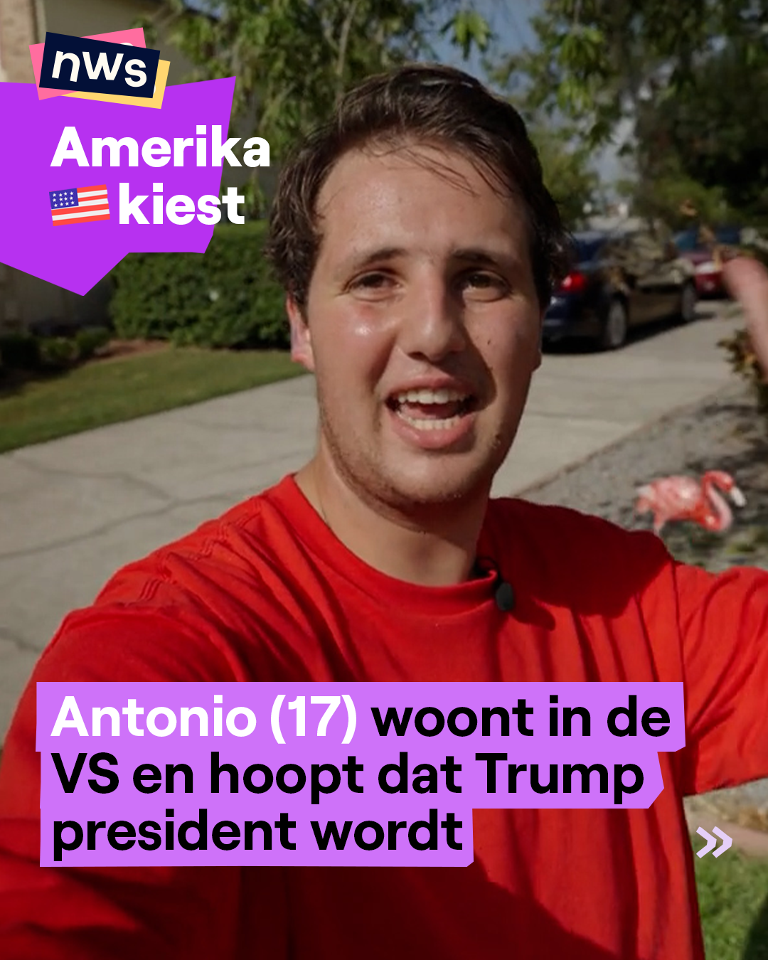 Dinsdag 5 november kiezen Amerikanen hun nieuwe president. Wordt het opnieuw Donald Trump of wordt Kamala Harris de allereerste vrouwelijke president van het land? Onze collega's gingen alvast langs bij twee tieners in de VS om hun mening te horen. First up: Antonio Pizza (17) uit Oviedo in de staat Florida. Wil je meer weten over de verkiezingen in de VS? Check dan zeker de andere sliders en video's in het dossier 'Amerika kiest' op onze website (nwsnwsnws.be)!