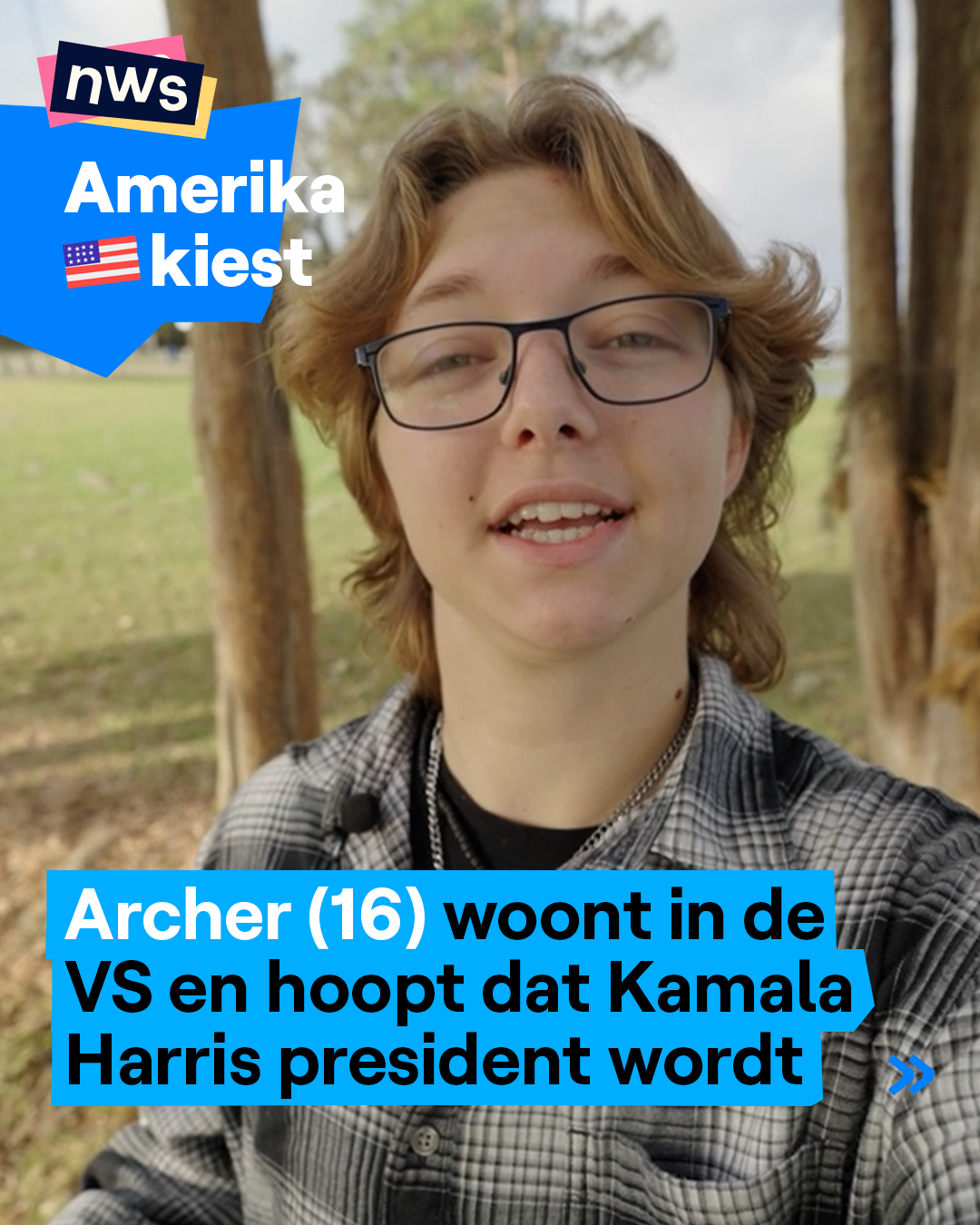 Dinsdag 5 november kiezen Amerikanen hun nieuwe president. Wordt het opnieuw Donald Trump of wordt Kamala Harris de allereerste vrouwelijke president van het land? Onze collega's gingen langs bij twee tieners in de VS om hun mening te horen. Antonio Pizza (17) was als eerste aan de beurt. Next up: Archer Cass (16) uit Clermont in de staat Florida. Wil je meer weten over de verkiezingen in de VS? Check dan zeker de andere sliders en video's in het dossier 'Amerika kiest' op onze website (nwsnwsnws.be)!