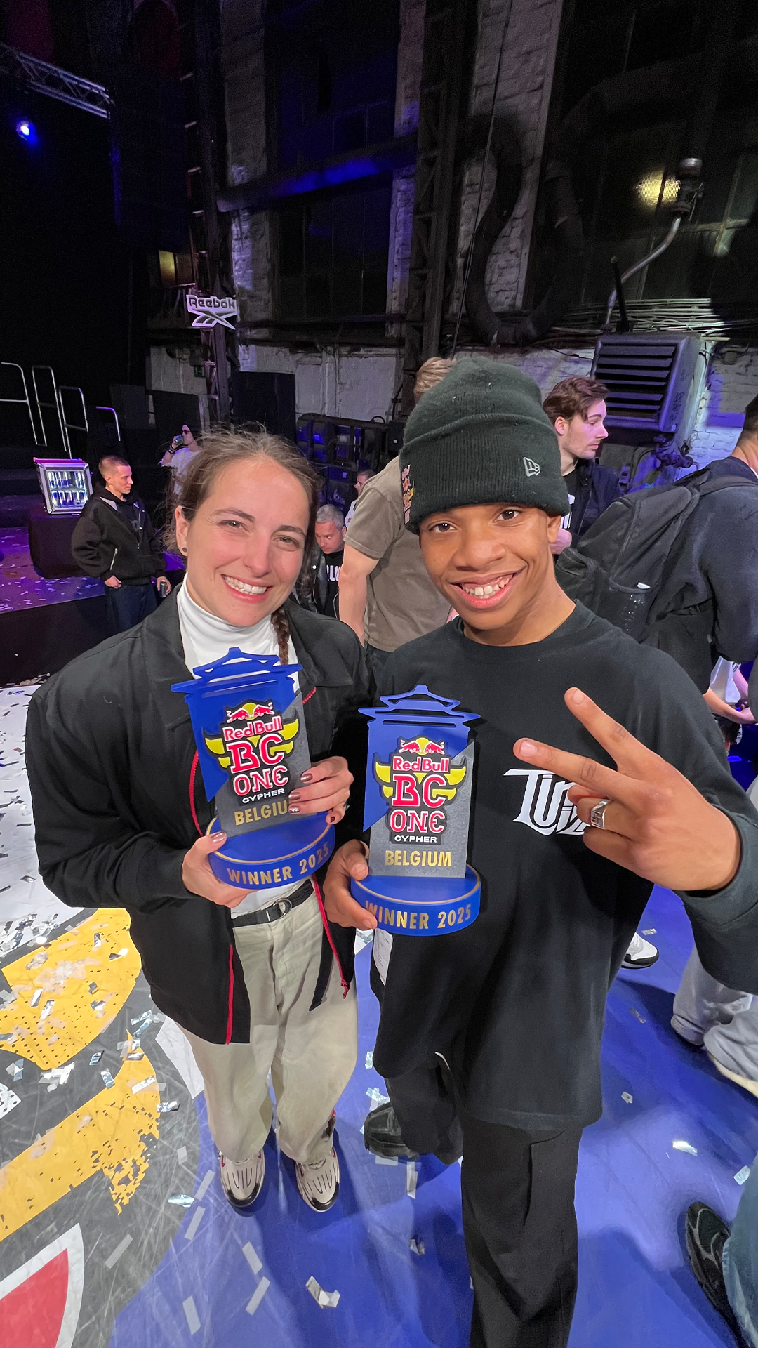 Bij de vrouwen won b-girl Camine (28) uit Antwerpen. Ook zij strijdt in november voor de wereldtitel in Tokio.