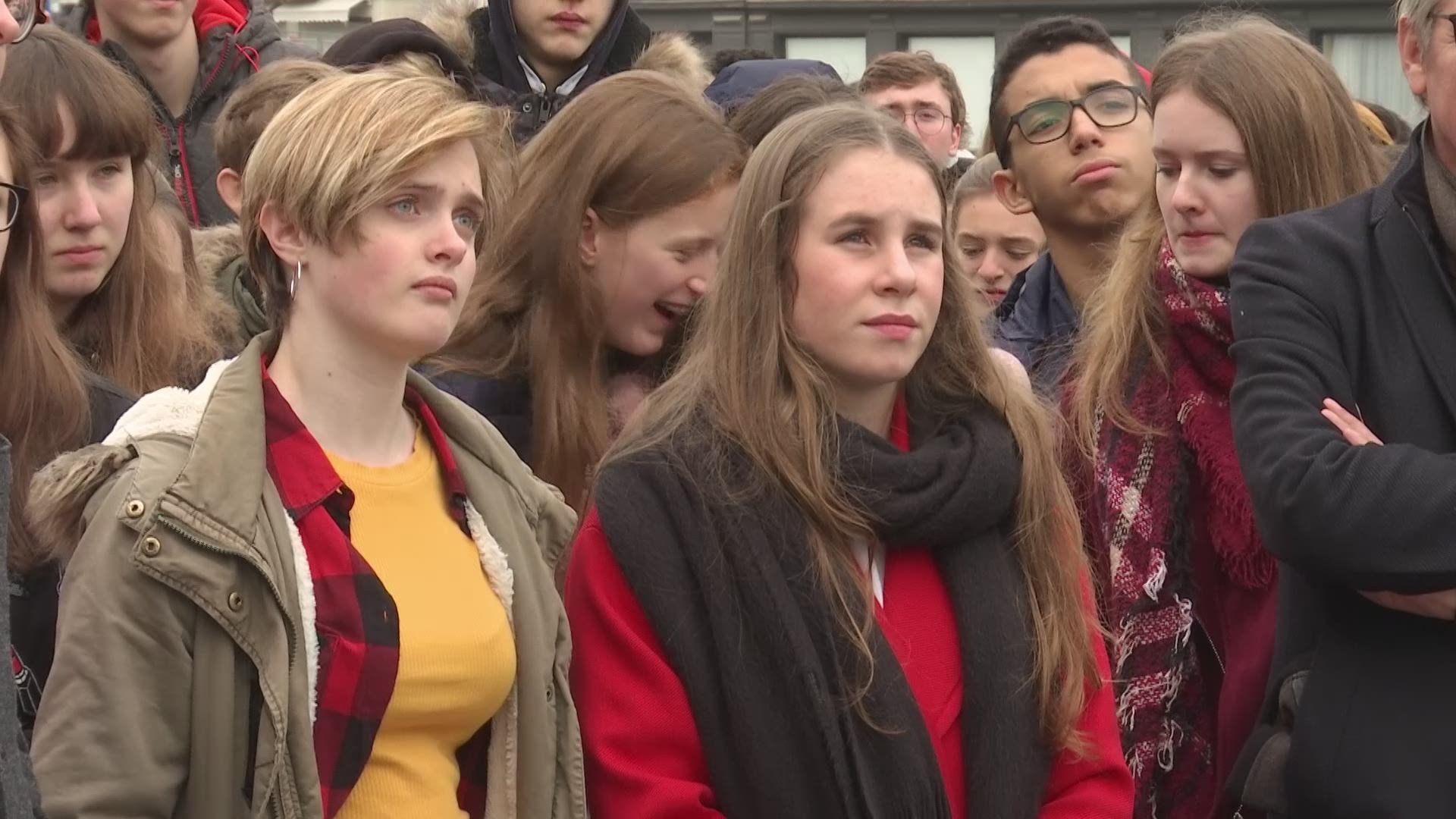 10/1/19 - Across Flanders schoolchildren played truant today to call attention to the problems posed by climate change. In Kortrijk two girls from a local school motivated 500 of their peers to march from their school to city hall to press a pro-climate message.