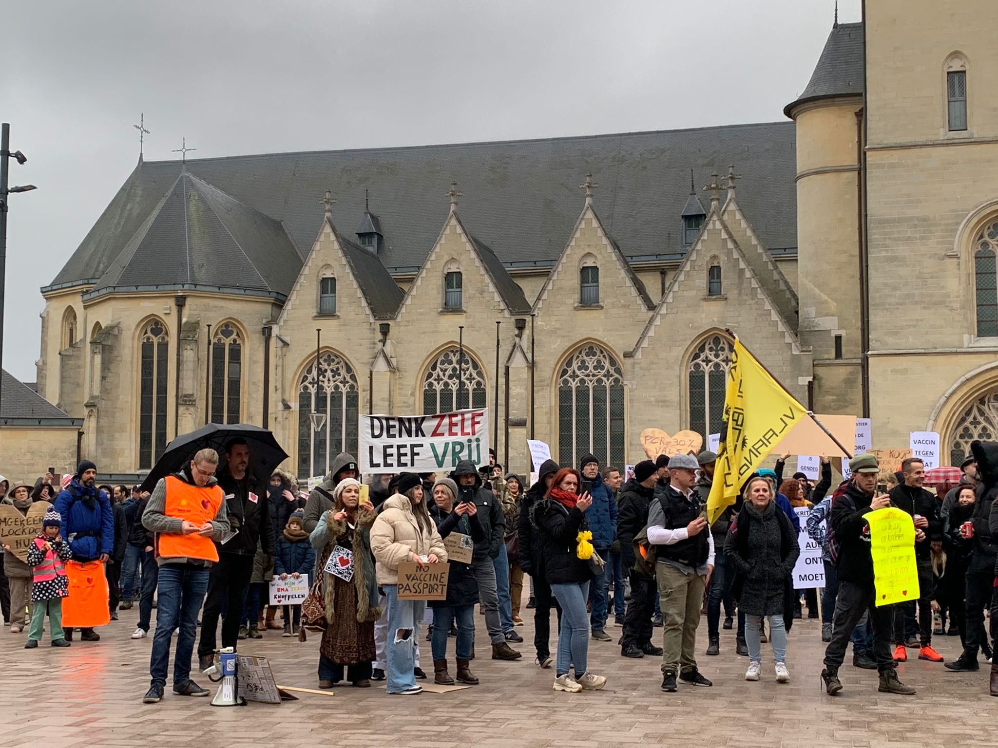 "Wij staan hier met een heel duidelijk doel", begint een demonstrant overtuigd. "We merken meer en meer dat het niet langer over gezondheid gaat, maar dat mensen verdeeld worden met ideeën die niet geloofwaardig zijn." De betogers kwamen samen, zonder mondmasker, om aan te kaarten dat een coronapas, vaccinatie voor kinderen en een verplicht vaccin voor mensen van de zorg, zaken zijn waar ze niet in geloven. "Een vaccinatie mag niet gelinkt worden aan een arbeidsreglement."