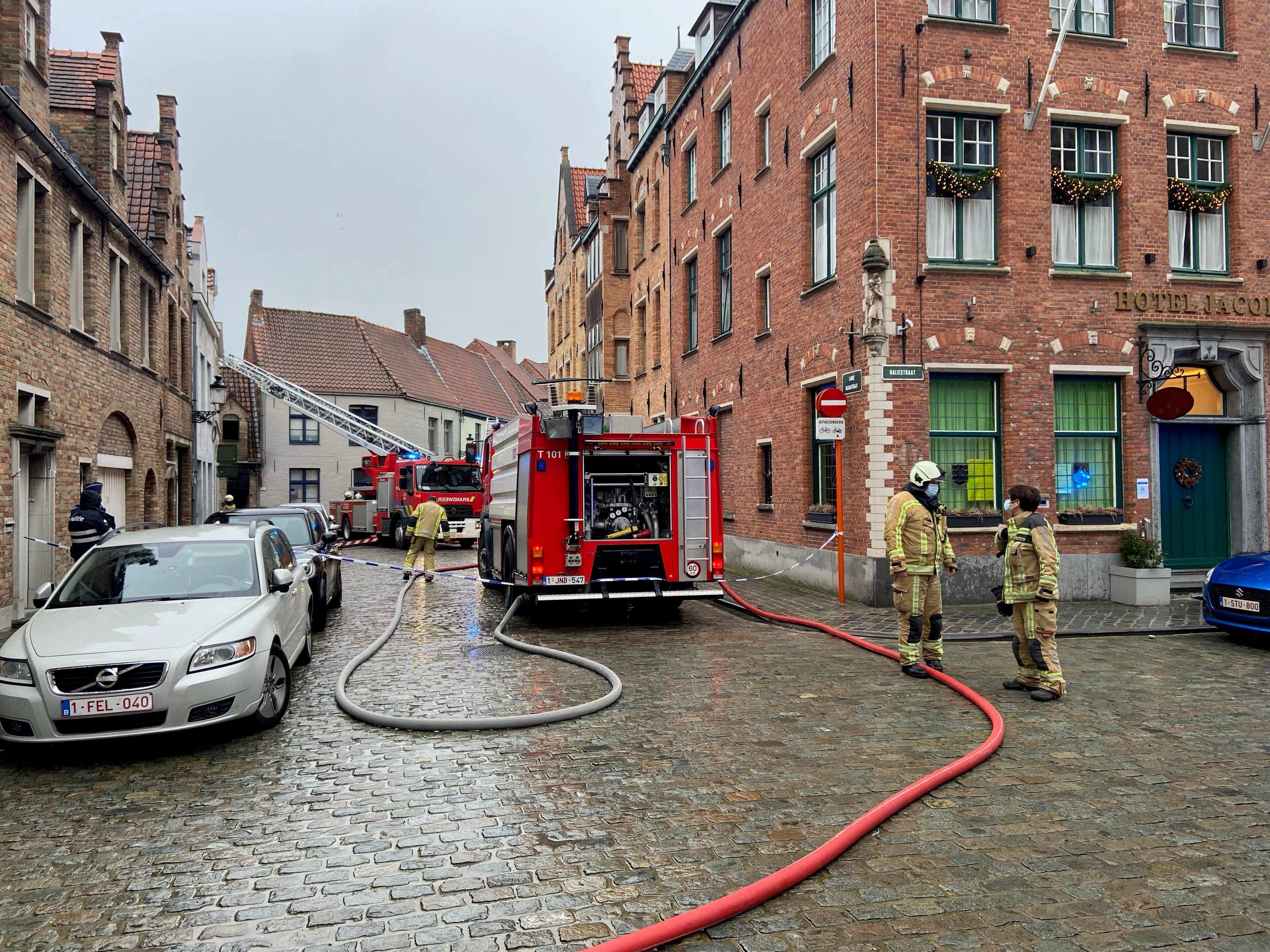 In het historische centrum van Brugge heeft een rijhuis zware schade opgelopen na een brand vanmorgen. De bewoner werd naar het ziekenhuis gebracht met brandwonden. Het huis zal een tijdje onbewoonbaar zijn. Hoe de brand ontstaan is, is nog niet duidelijk.