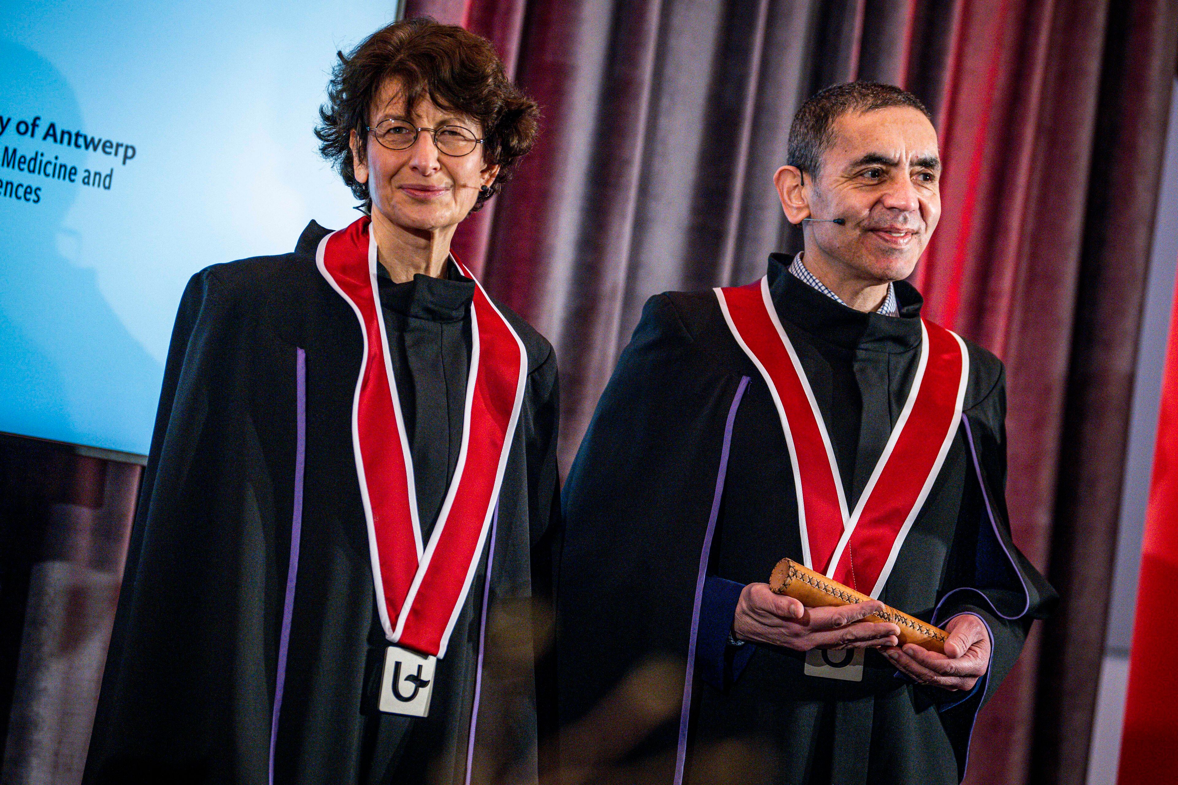 Aan het hoofd van BioNTech staan Uğur Şahin en Özlem Türeci, die het bedrijf in 2008 oprichtten. De universiteit van Antwerpen heeft hen vandaag een eredoctoraat van de faculteit geneeskunde en gezondheidswetenschappen uitgereikt "als erkenning voor hun pionierswerk in de ontwikkeling van de mRNA-technologie en het daarop gebaseerde coronavaccin dat de gezondheid en het leven van miljoenen mensen heeft beschermd".