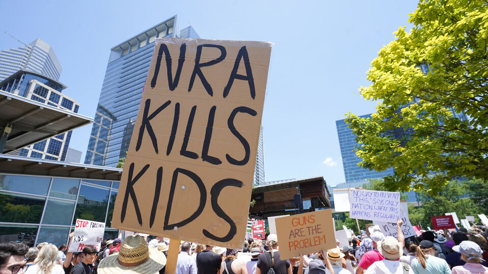 De machtige Amerikaanse wapenlobby NRA was dan weer zeer tevreden over de uitspraak. Ze noemt het arrest over wapendracht buitenshuis een "overwinning". "Het Hooggerechtshof bevestigt dat het recht om wapens te dragen niet stopt aan iemands voordeur", schrijft de NRA op Twitter.