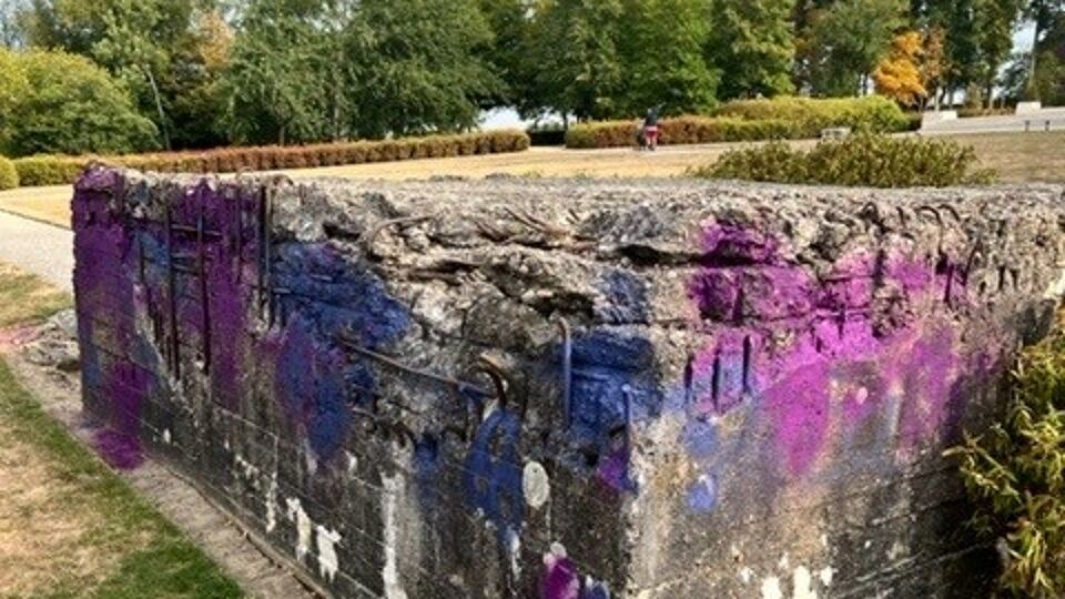De politie onderzoekt wie het monument heeft beklad, maar heeft nog geen sporen.