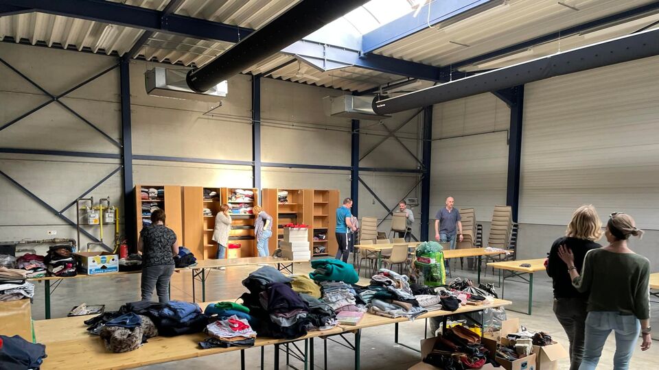 Oorlog Rusland-Oekraïne Wakasa en Keramo Techniek richten in Genk opvang in voor 72 Oekraïense vluchtelingen Lege bedrijfshal werd gevuld met kampeer- en spelmaterialen do 31 mrt 15:17 Artikel van Radio 2